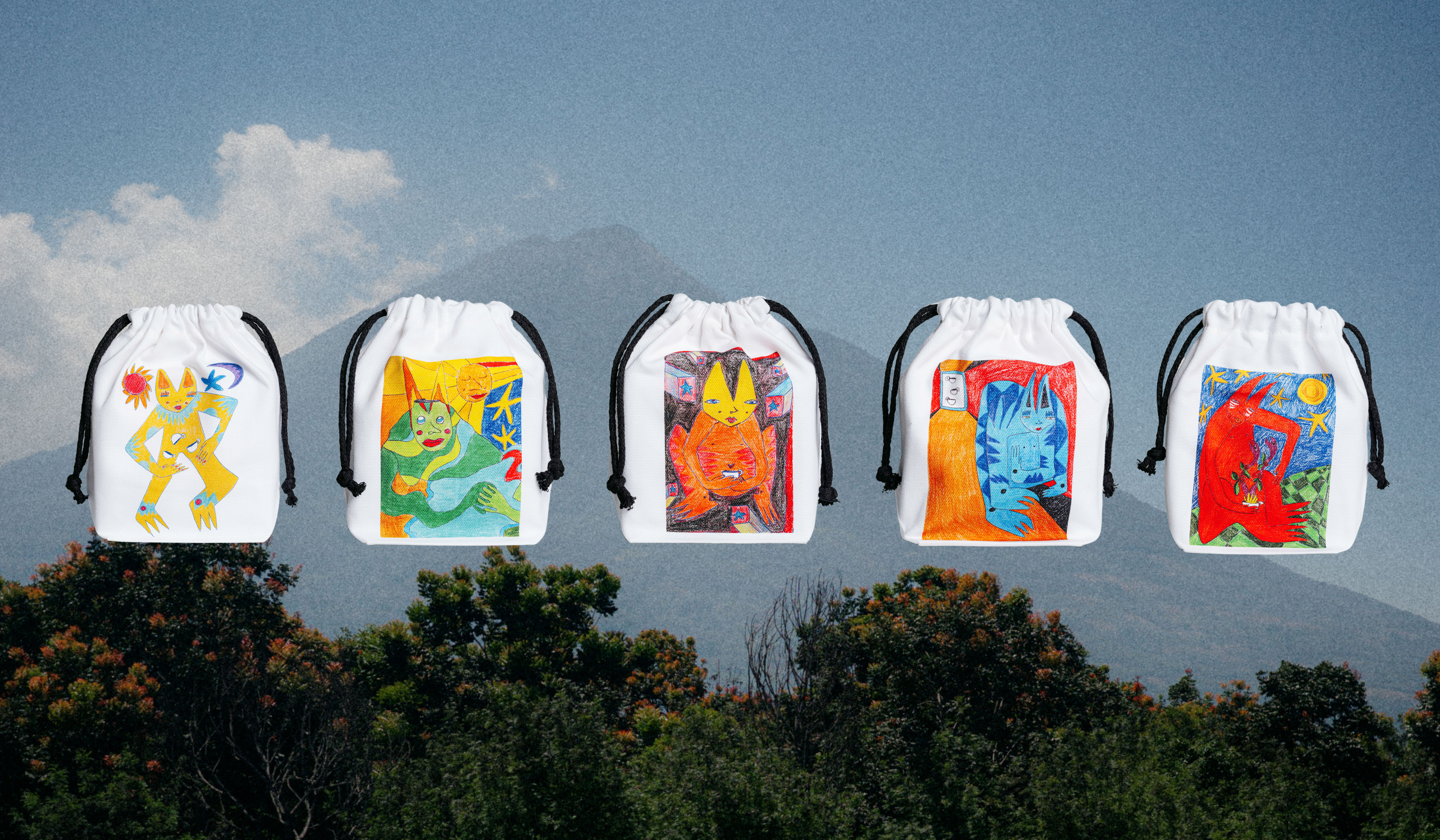 The motifs for each coffee were created by Guatemalan artist Markos Fischer, who also served as one of our guides. “I spoke with local people about the legends told about the surrounding landscape. Many stories circulate here about deities who are offered sacrifices to protect nature — guarding trees from disease, mountains from landslides, and bringing abundant harvests. I drew inspiration from these stories and created a character for each coffee, inspired by the magic that Guatemala holds,” Markos explains.