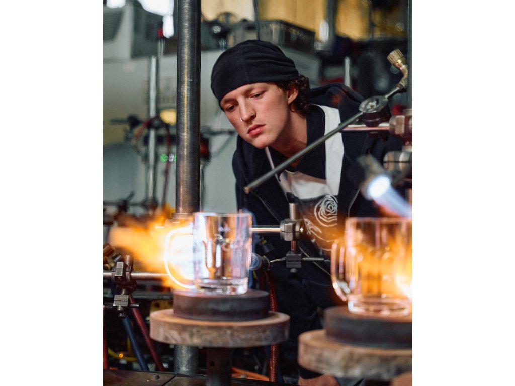 České pivo si zaslouží české sklo – proto jsme oživili tradici půllitrů z pravého českého křišťálu. Návrh vznikl ve spolupráci s designery Michalem Froňkem a Janem Němečkem (studio Olgoj Chorchoj, vedoucí Ateliéru produktového designu D3 na UMPRUM) a jejich studenty v rámci semestrální práce. Výroby se ujala česká sklárna BOMMA, která se pyšní dlouhou tradicí i unikátní technologií lisování pivního skla.